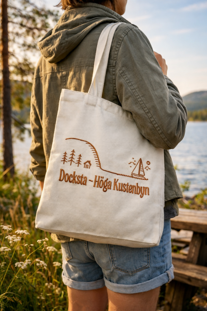 • Väskor och accessoarer med by- eller områdeslogotyper